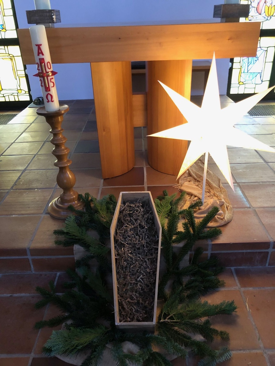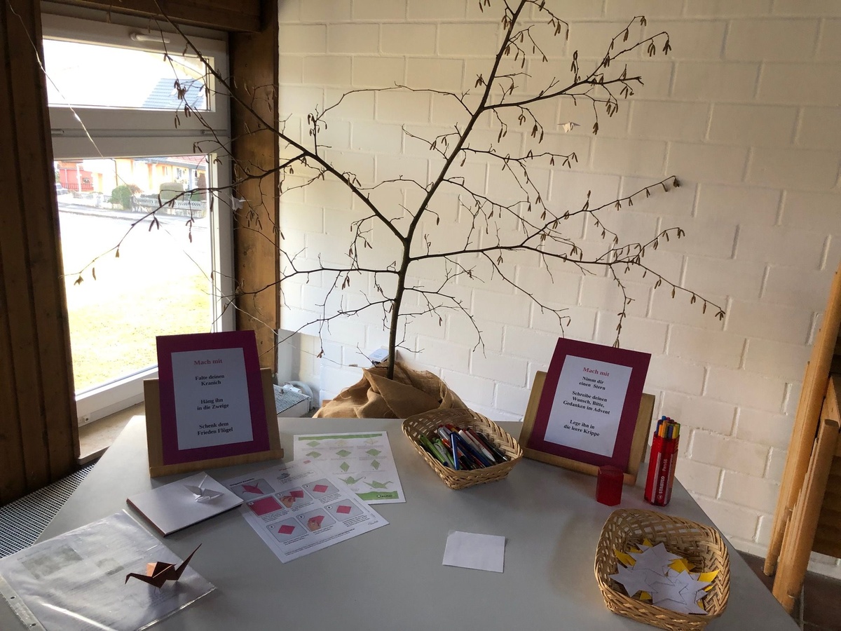 Das Kirchenzentrum ist an allen Tagen des Advent geöffnet und lädt ein zum (kurzen) Innenhalten, Verweilen oder auch Mitmachen, Musik zu hören und Gesichter des Friedens zu betrachten.