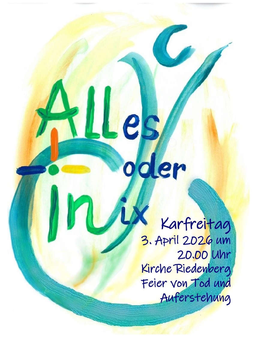 Schon seit Jahren versucht das liturgische Format des „All In“ am Karfreitagabend die gesamte Passionsgeschichte in einer Feier abzubilden und so eine neue und ansprechende Form eines österlichen Gottesdienstes erlebbar werden zu lassen. In diesem Jahr bilden Lieder aus dem Neuen Geistlichen Lied den roten Faden, die in Korrespondenz mit den biblischen Texten gebracht werden. Mehr als bisher sollen die Mitfeiernden in das Geschehen einbezogen werden durch symbolische Handlungen.