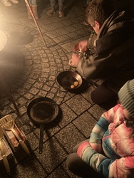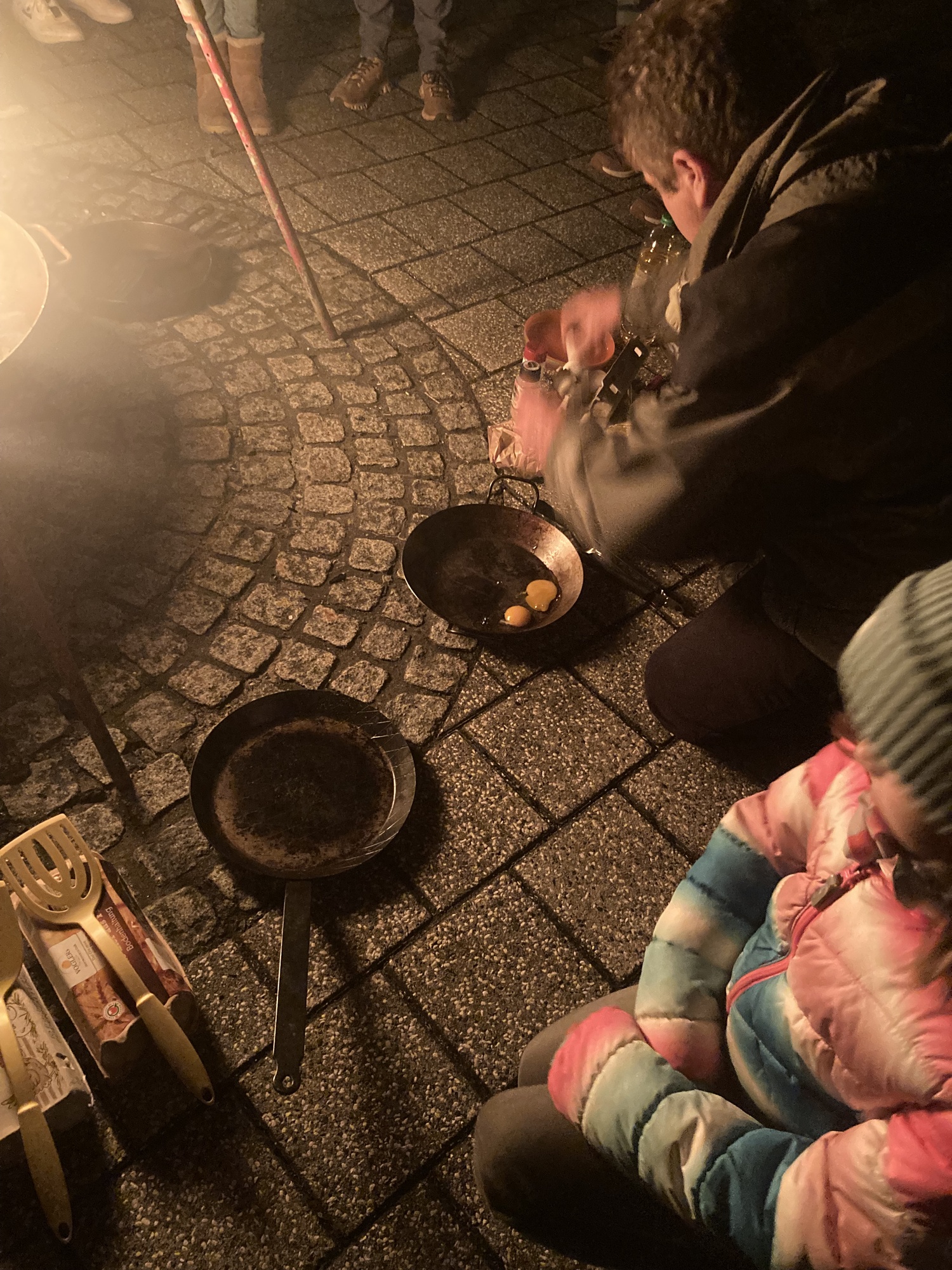 Die erklapperten Eier wurden nach der Osternacht zu später Stunde noch über dem Osterfeuer gebraten.
