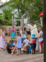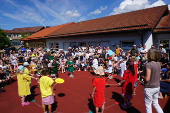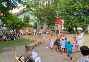 Am Ende des Feiertages bedankte sich Susanne Raab bei allen Helferinnen und Helfern, die zum Gelingen des Festes beigetragen haben und noch einmal bei den Papas und Männern, die bei der Erneuerung des Spielhofes so fleißig angepackt haben.