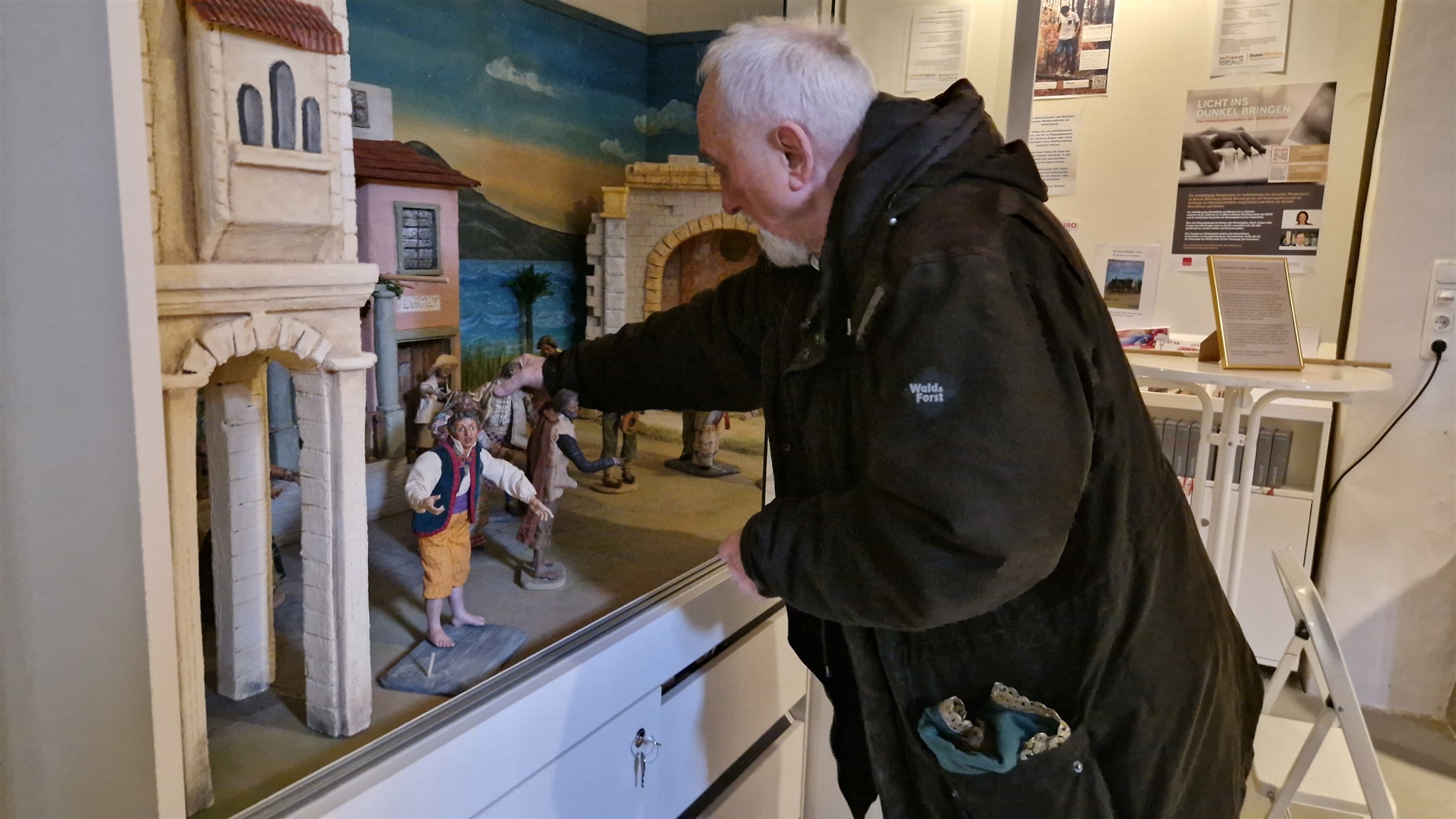 Die Wallfahrtskirche auf dem Volkersberg ist um ein Schmuckstück reicher. Seit wenigen Tagen steht hier eine neapolitanische Ganzjahreskrippe.