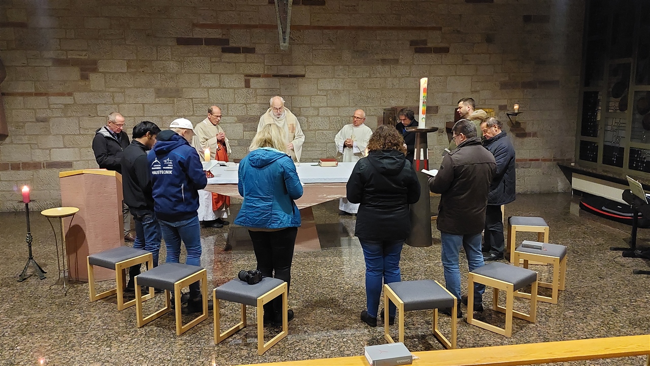 Domkapitular Christoph Warmuth ist im Auftrag des Würzburger Diözesanbischofs Dr. Franz Jung am Christkönigsfest auf den Volkersberg gekommen, um die dortige Hauskapelle des Lernwerks Volkersberg zu