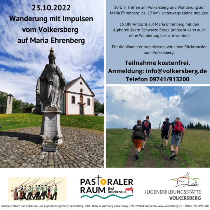 Herzliche Einladung zur Wanderung mit Impulsen am 23.10.2022 vom Volkersberg auf Maria Ehrenberg.